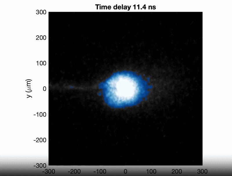 論文中的超快顯微成像清晰記錄了這顆發光球體的全部演化:一個直徑約 80 微米的高亮度等離子體球在 20 納秒內成形,隨後持續膨脹至半徑超過 200 微米,始終保持球形輪廓和固定球心。