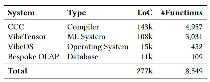 爲了驗證 FM-Agent 的實戰能力,研究團隊對四款由 Claude Opus、GPT Codex 等頂尖編程智能體生成的大規模系統進行了正確性推理。