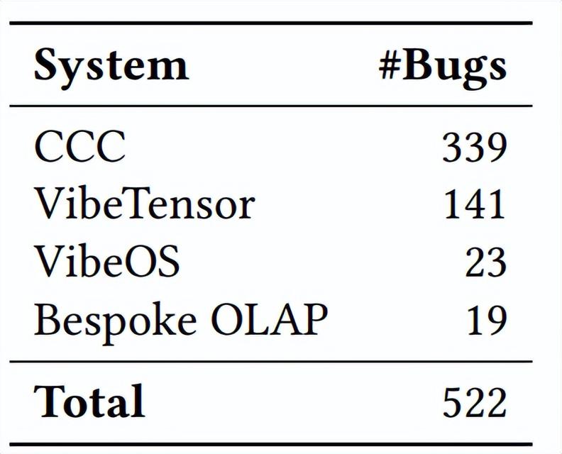 在 Anthropic、NVIDIA 等用頂尖編程智能體生成的多個大規模系統(單個系統規模高達 14.3 萬行)中,FM-Agent 成功找到了 522 個隱藏 bug。值得關注的是,這些 bug 經過單元測試、差分測試、多智能體交叉審查等手段都未能發現。