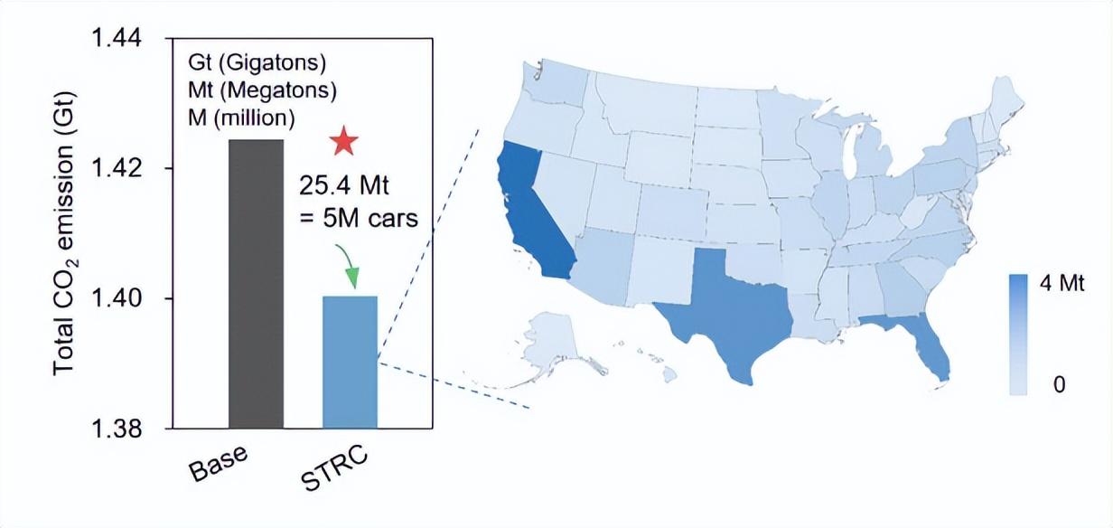 基於真實市場推演一下:美國目前約有 2.8 億輛註冊乘用車,每年因交通運輸產生的 CO₂排放總量約爲 19 億噸。如果將這項技術應用於美國所有的乘用車,每年預計可減少約 2,540 萬噸的二氧化碳排放。這一減排量,相當於直接從道路上消除了約 500 萬輛燃油汽車。