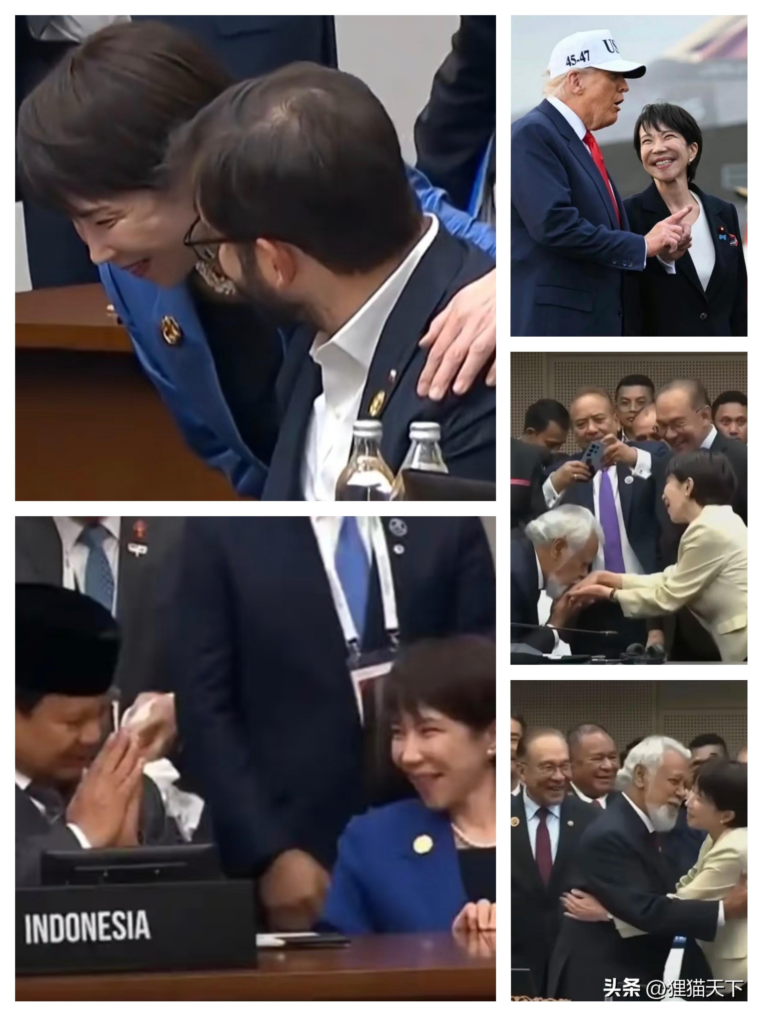 不過想想高市早苗之前的幾次外交名場面,她就不是收斂的性格,她是主動出擊類型的。她可以跟第一次見面的智利總統勾肩搭背,可以主動靠近印尼總統普拉博沃,可以像迷妹一樣仰望美總,還能欣然接受東南亞小國總統的吻手禮貼面禮,雖然這是正常禮儀,但她做出來的動作看着太浮誇了。
