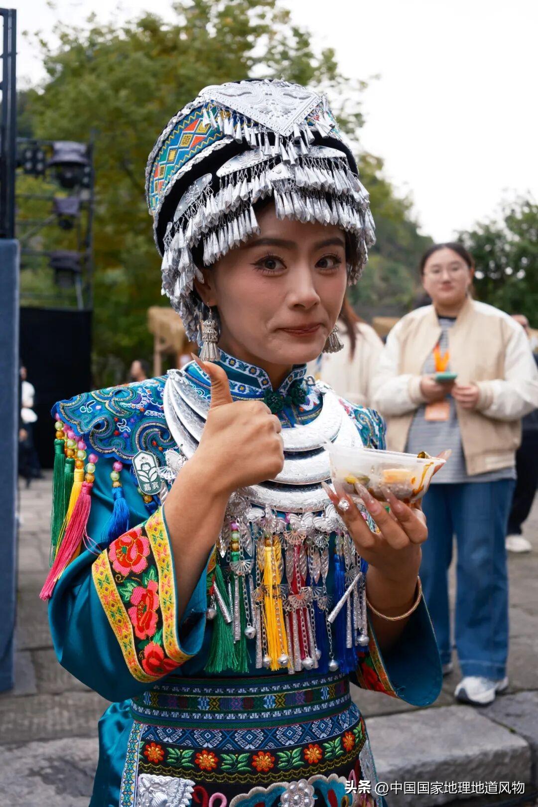 一位身着苗族盛裝的嘉賓,在品嚐玫瑰苦蕎鮮花餅後被瞬間驚豔,這是味蕾的驚喜,也是對貴州風物創新的讚美。