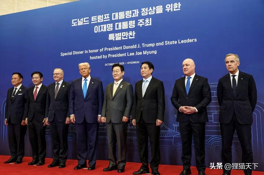 這次在韓國,卡尼看到美總提前回去,他反倒沒壓力了,還能開心的跟三個好夥伴一起合影。他們四個來自新加坡、澳大利亞、新西蘭、加拿大,雖然是三個大洲的,但都是英系國家,而且澳加新同爲五眼聯盟成員,卡尼跟他們在一起開心的露出笑容,這是發自內心的高興。