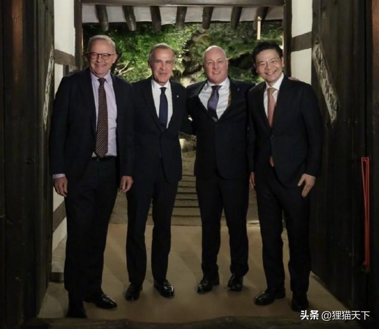 這次在韓國,卡尼看到美總提前回去,他反倒沒壓力了,還能開心的跟三個好夥伴一起合影。他們四個來自新加坡、澳大利亞、新西蘭、加拿大,雖然是三個大洲的,但都是英系國家,而且澳加新同爲五眼聯盟成員,卡尼跟他們在一起開心的露出笑容,這是發自內心的高興。
