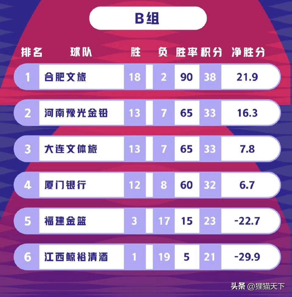 另外在B組排名後兩名的是福建女籃和江西女籃,這兩隊本賽季所有比賽到此結束,其中的江西女籃只獲得了1勝19負,看得出來差距還是挺大的。之所以要分成A組和B組,也是因爲強隊和弱隊實力相差懸殊,不能讓比賽太沒有懸念了。