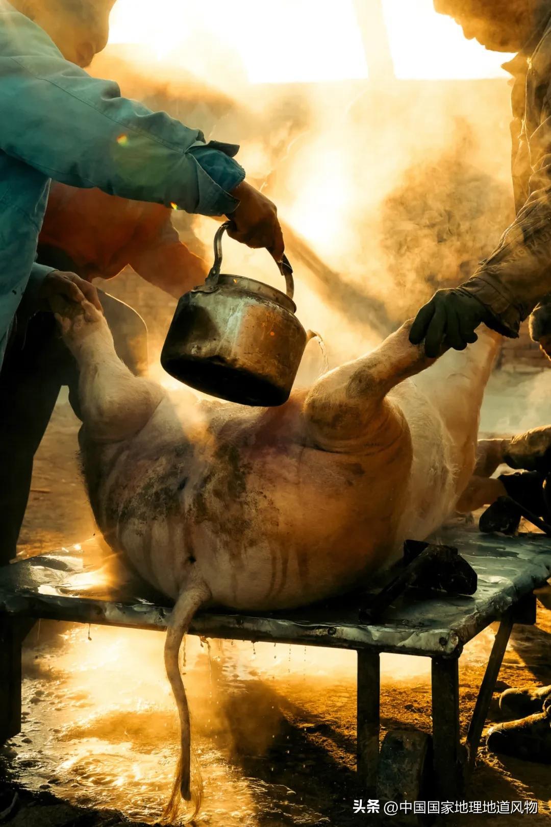 殺年豬,做大菜,自然是過年前頭一大盛事。全村老少齊齊上陣,一頭年豬被精細分割,一塊胸前“尖刀肉”留給屠夫,熱氣騰騰的煮頸肉肥潤可人,適合分給鄰里。燉鍋裏上下浮動的豬尾巴勾得娃娃們直流口水,用打好氣的豬膀胱踢球賽更是娃娃們的必玩項目。年味,便這樣在歡聲笑語裏綻放。