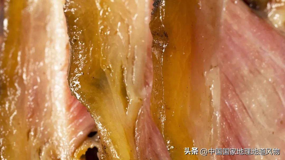要論年味上品,還有火腿。甘肅隴西是北方唯一的火腿產區。這道火腿的喫法,便盡顯西北豪放本色,蒸煮後,直接切塊上桌,或者切成薄片配上饃饃同食,便是一道硬菜,也可和雞脯、雞蛋清混在一起,煎成火腿鍋貼,更顯肉香的層次感。