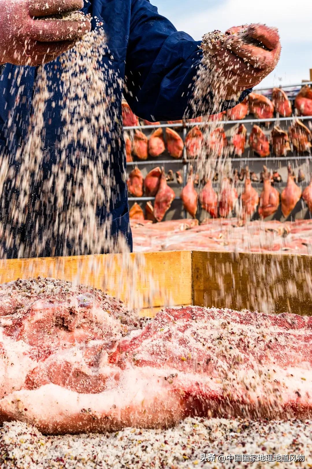 隴西火腿的考究之處,絲毫不亞於南方火腿。隴西以南的岷縣、卓尼一帶山地裏有種喫着蕨麻等珍貴食材,長不大的蕨麻豬,配上青鹽、祕製調料與麴酒,反覆加工,懸掛風乾,纔有了一枝紅亮亮的隴西火腿。隴西另出產一種鹹香可口的臘肉,與橫貫陝甘南部的秦巴山地裏家家房樑上懸掛的臘肉,一起組成了別具特色的臘味“飛地”。
