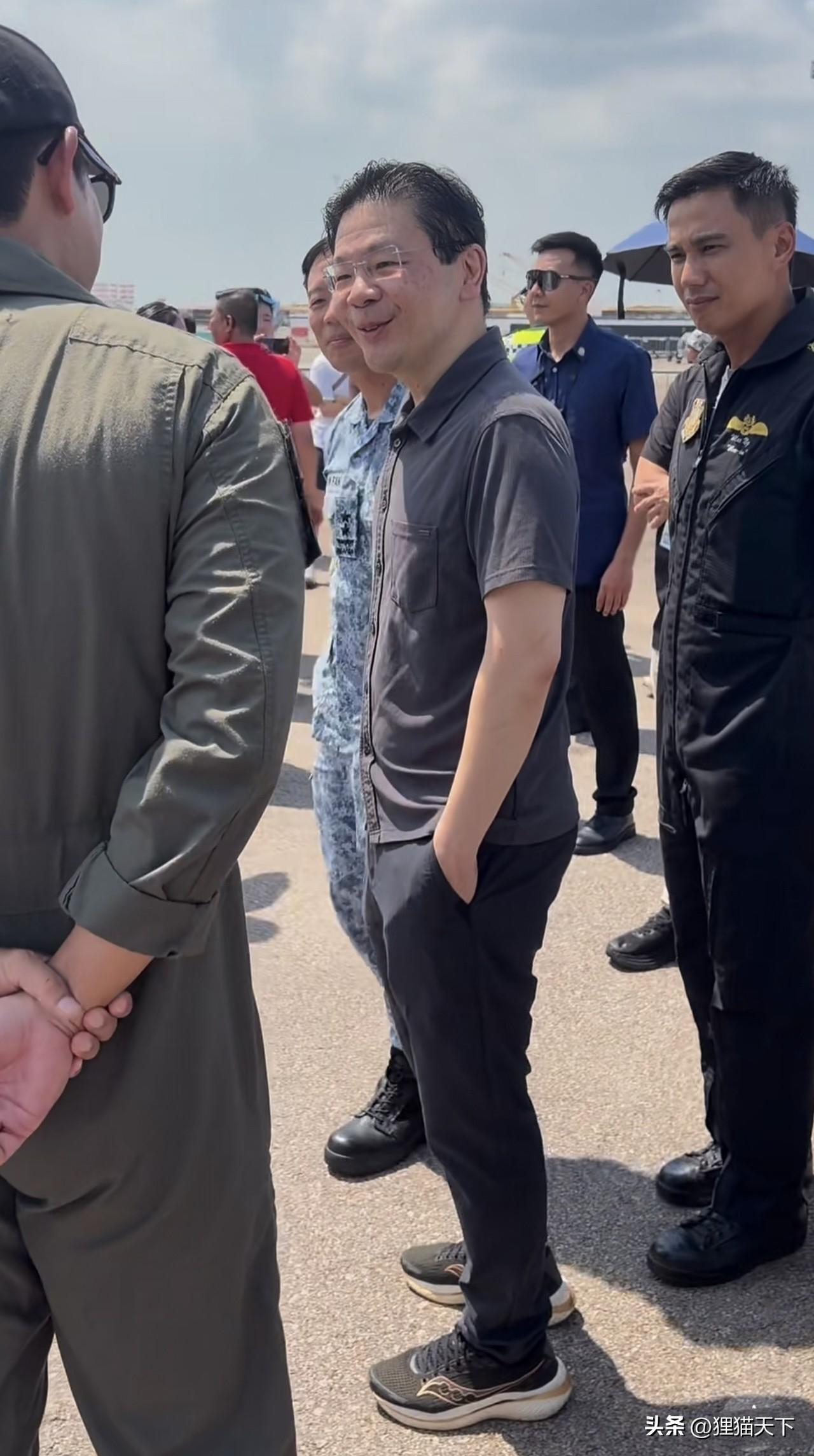 另外這幾天新加坡氣溫高太曬了,戶外看航展也沒有遮陽的地方。就連黃循財也熱,他身邊還有一羣人跟着保護,爲了顯得親民沒有撐遮陽傘,戶外這麼曬他髮型都溼了。