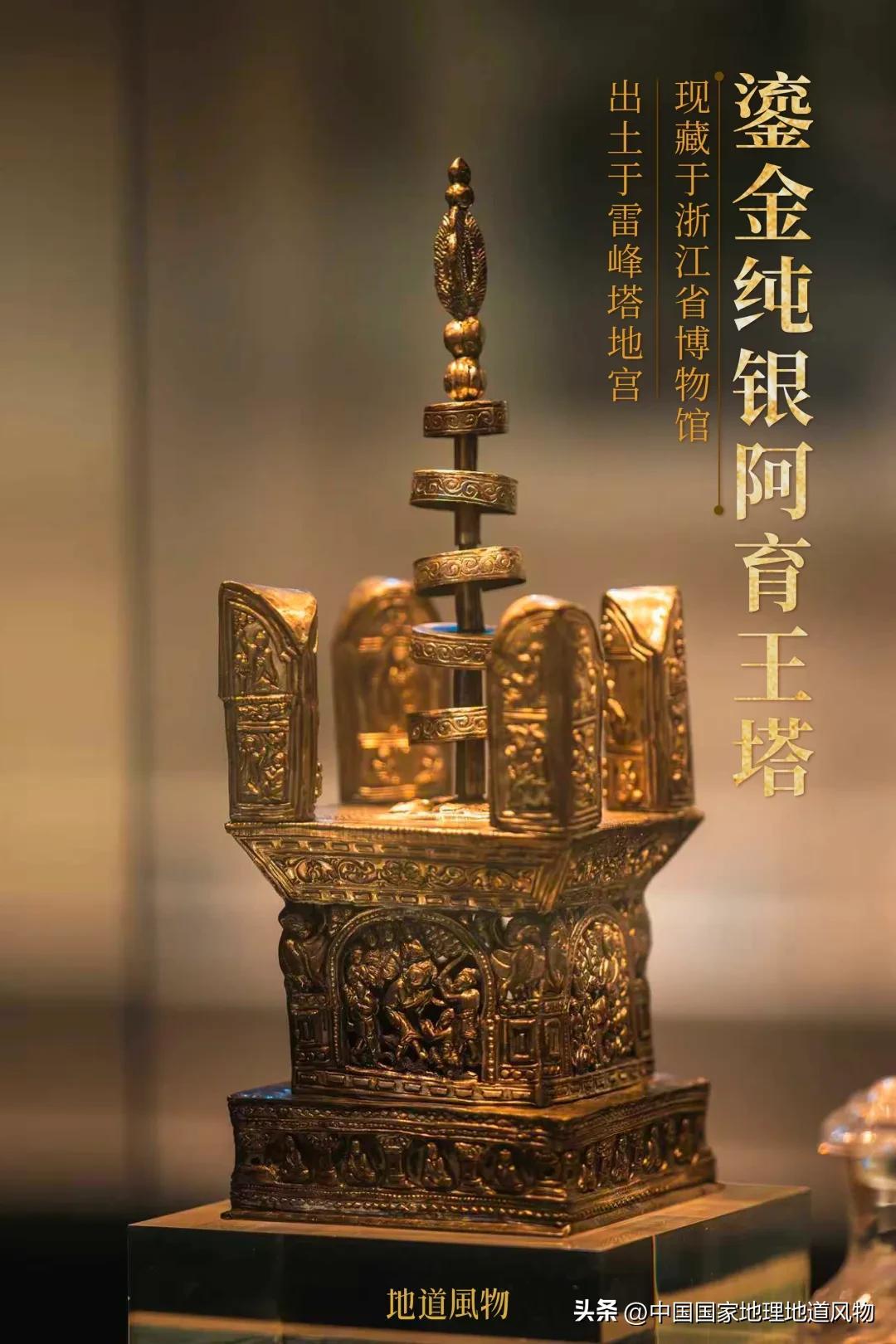 下:杭州雷峯塔出土的阿育王塔,