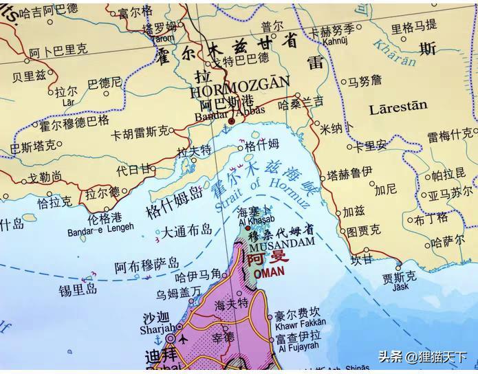相比之下,阿聯酋在霍爾木茲海峽相對外圍的地方,而且主要發展海濱旅遊,包括迪拜這個土豪城市。反倒是阿曼的飛地穆桑達姆半島挨着霍爾木茲海峽,這也是阿曼最北端,與伊朗相隔50多公里,中間就是霍爾木茲海峽。