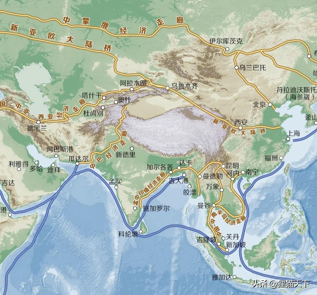 從地理位置來看,其實新加坡離中東並不太遠,而且剛好在同一條航線上。由於印度洋中部的國家和島嶼比較少,所以大部分輪船航線都貼着沿岸航行,從新加坡往西過了馬六甲海峽就是印度洋的水域,一般都是經過斯里蘭卡附近,然後順着南亞沿岸到阿曼灣、波斯灣,大致航線如下所示。