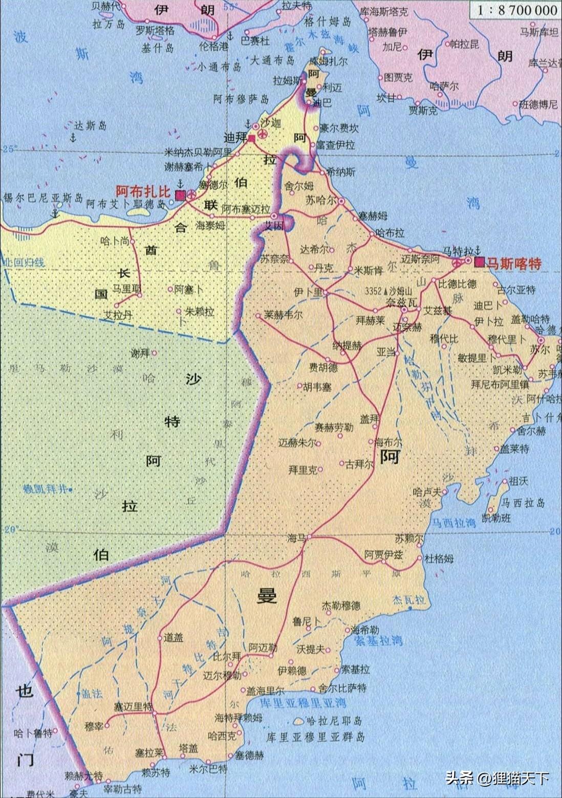 西亞地區的海灣國家最近不安寧,交通運輸也受到影響,這才發現從阿聯酋到阿曼這一帶的重要性。其實從阿聯酋走陸路就能繞過霍爾木茲海峽,可以從烏姆蓋萬或者哈伊馬角這兩個地方往東,要不了多遠就是阿聯酋的阿曼灣一側,剛好不用經過霍爾木茲海峽。