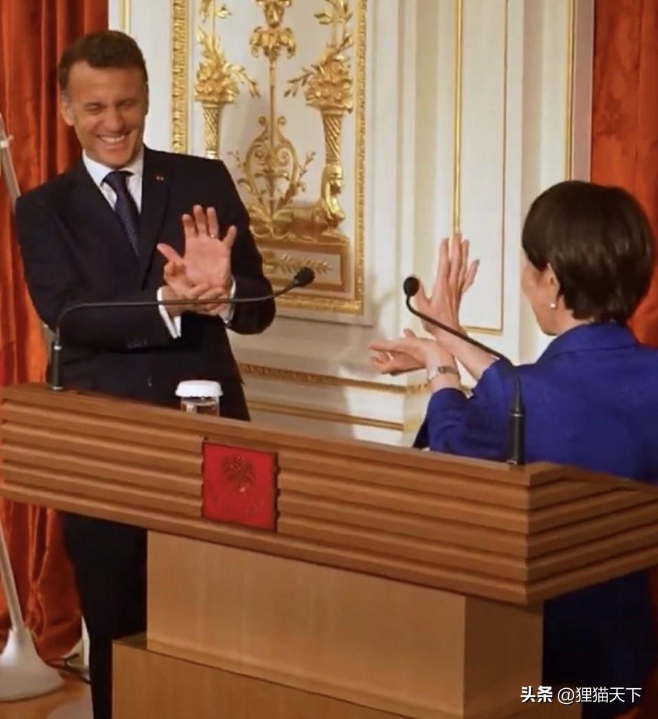 值得一提的是,最近高市早苗就是看過馬克龍之前的熱門話題,知道他是漫畫龍珠的粉絲,還模仿過。於是高市當面跟馬克龍一起模仿,就是這個“龜派大法”的動作,他們兩個就像在互相作法。
