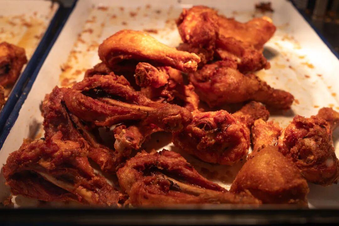 炸雞可以半隻、整隻稱斤賣,也可以單買雞腿、雞翅。