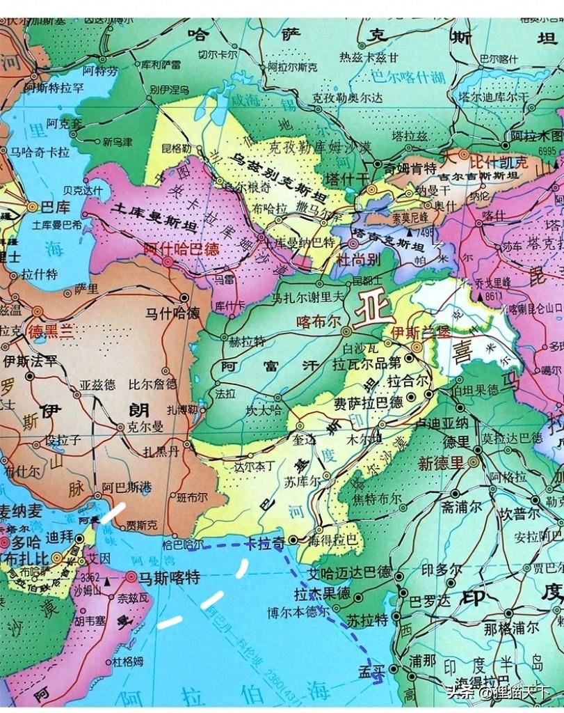 從這再往東就是巴鐵的瓜達爾港,繼續貼着北岸航行經過卡拉奇港。再過去就可以沿着印度沿岸,畢竟阿拉伯海以東就是印度。只要輪船貼着岸邊航行,美方就得掂量掂量。