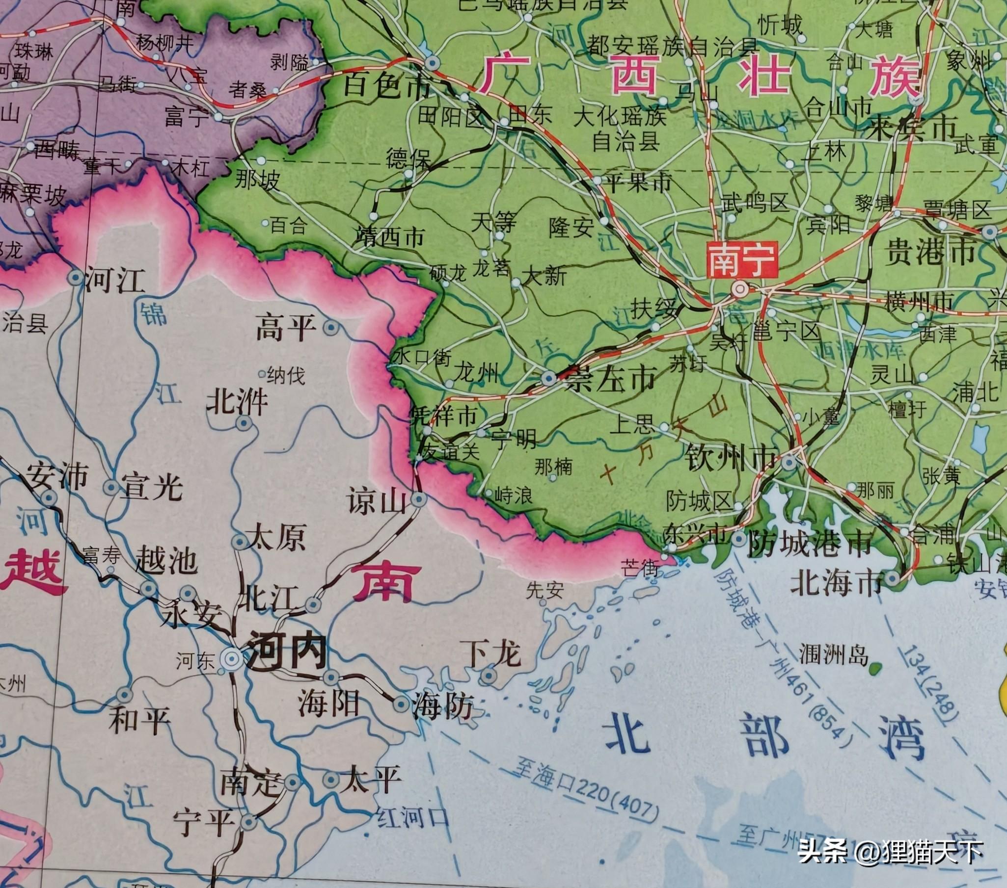 目前從廣西到越南只有憑祥是鐵路口岸,不過這兩邊的鐵路軌距不同,咱這邊是標軌,越南那邊是窄軌。以前兩邊的火車開到口岸之後要換火車,乘客和貨物需要換乘對方的火車,這樣來回換來換去耽誤時間。現在從廣西憑祥到越南的鐵路採用了套軌技術,就不用換火車了。