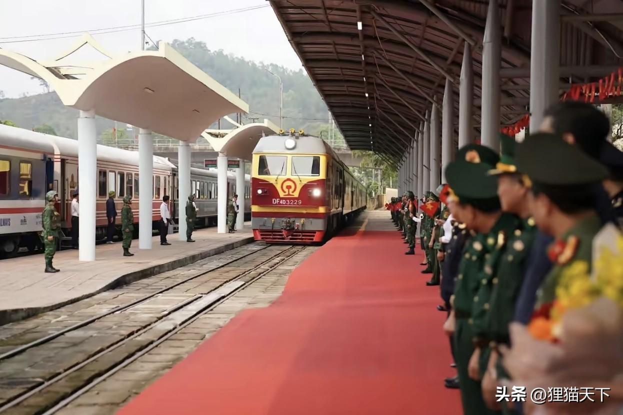 在越南那邊修的鐵路主要是窄軌鐵路,軌距是1000mm,而我國的鐵路是標準軌1435mm軌距。原本從這進出是火車需要進行換車,但後來咱們有了套軌技術,在標準軌道上額外增加一條軌,也就是“川”字形,這樣就不用換火車了,窄軌火車也能開過來。